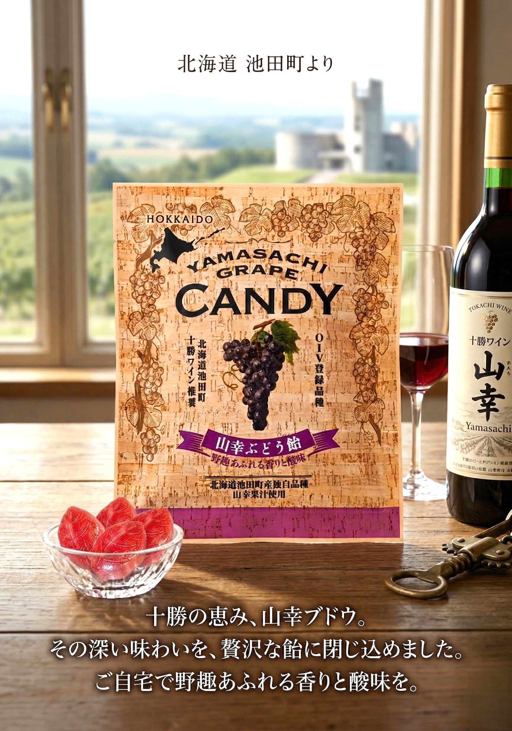 「山幸ぶどう飴」は、池田町ブドウ・ブドウ酒研究所の独自品種で